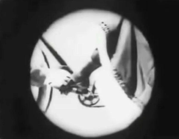 British filmmaker George Albert Smith is responsible for some particularly fine early examples of the insert closeup, such as The Sick Kitten (1903) and As Seen Through a Telescope (1900), the latter of which also features a woman’s ankle as a shoe is tied in place.