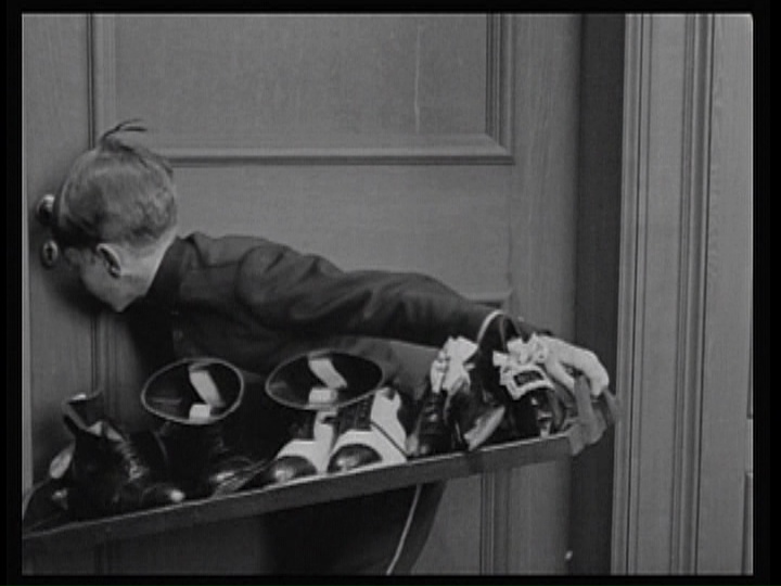 However, I should mention that both The Sick Kitten and The Gay Shoe Clerk use the closeup in a more modern manner as they do not require the motivation of a telescope or magnifying glass or anything else as an excuse to bring the viewer in for a closer look. It could be argued that The Gay Shoe Clerk’s closeup is a point-of-view shot but it does not align with the clerk’s line of sight and is clearly present for the benefit of the audience. (You can see an excellent example of multiple interpolated closeups in Smith’s comedy Mary Jane’s Mishap, which was made a bit before The Gay Shoe Clerk.)