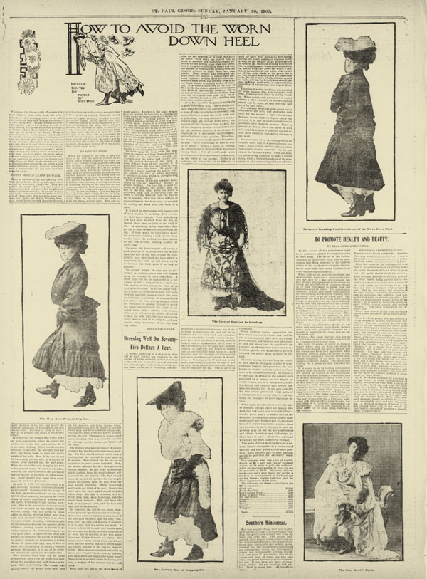 Newspapers of the time are full of articles that showcased the female ankle in both photographic and drawn forms, usually under the guise of showcasing exercise or fitness. The Saint Paul Globe printed two articles in rapid succession that showcased how to keep one’s boot heels from wearing down. The pieces were lavishly illustrated with photos of women with hitched skirts. For science, apparently.