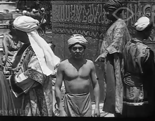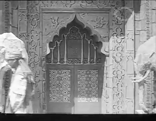 When the mystic begins to tell the story of the lovers, the camera cuts to city gates and then begins to move toward those gates, through the crowd, until the doors open and reveal the sleeping lovers. As tracking shots go, this is spectacular for 1914.