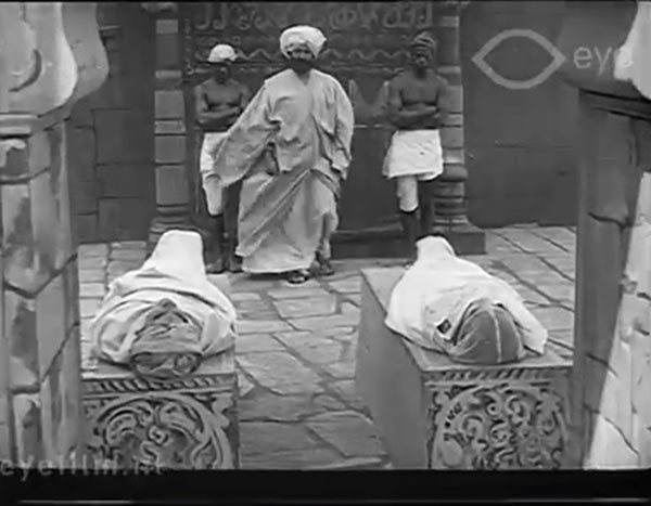 The Mystery of the Sleeping Death reveals the ambition and vision of American filmmakers of the period but, in this case at least, budget limitations clearly hindered the scope of the fantasy. The painted sets and cardboard statues are hardly conducive to getting us lost in the daydream, though the costumes are generally very good.