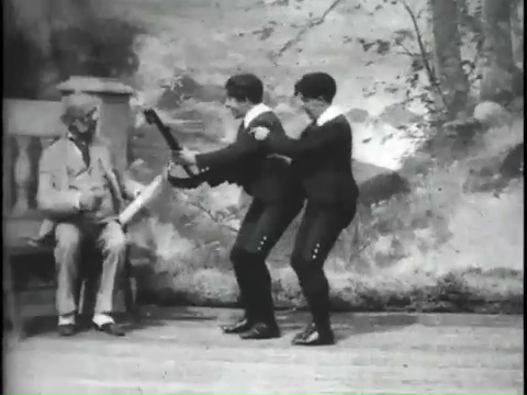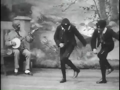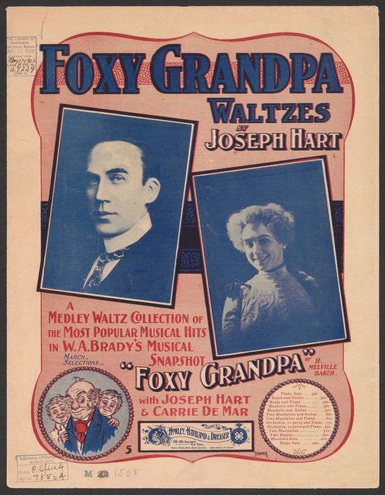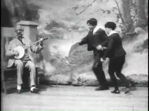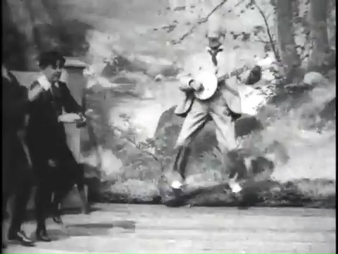 The Foxy Grandpa film series continued into 1903 and showcased the antics of grandpa and the kids. One of the other surviving films in the series, Foxy Grandpa and Polly in a Little Hilarity features Joseph Hart and Carrie de Mar, married in real life, showing off their hoofing skills in character.