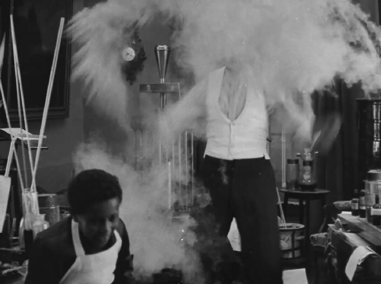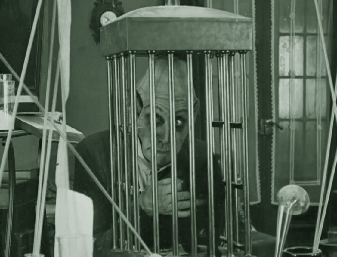 Séverin-Mars plays Dr. Tube, a curious-looking creature indeed who experiments all day in his lab with only his young assistant for company. Tube’s nieces decide to pay a visit, which gives him an opportunity to use his new light distorting power on both the young women and their boyfriends. After more mirror-based shenanigans, which take up the bulk of the short’s runtime, all is returned to normal and Tube sticks his head in a birdcage.