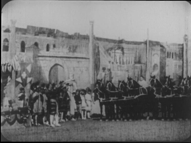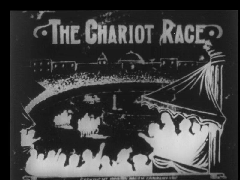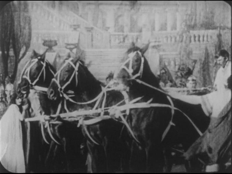 The funny thing is, I wouldn’t really consider the 1907 Ben-Hur to be a full adaptation myself. The ads for the picture credit the chariot race to the National Guard, one of many amateur and semi-professional charioteering exhibitions put on at the time, often for charity. I believe it because the race scene is a mess. The horses all look alike and it’s impossible to tell who is who, who won or even if there was a winner. The usual dramatic solution was to provide the hero with a team of white horses but one cannot be choosey about the horse colors in a military presentation. In fact, I strongly suspect that the race scene was a Mack Sennett-style attempt to take advantage of an already-scheduled event with the rest of the picture backfilled as an excuse to showcase the chariots.