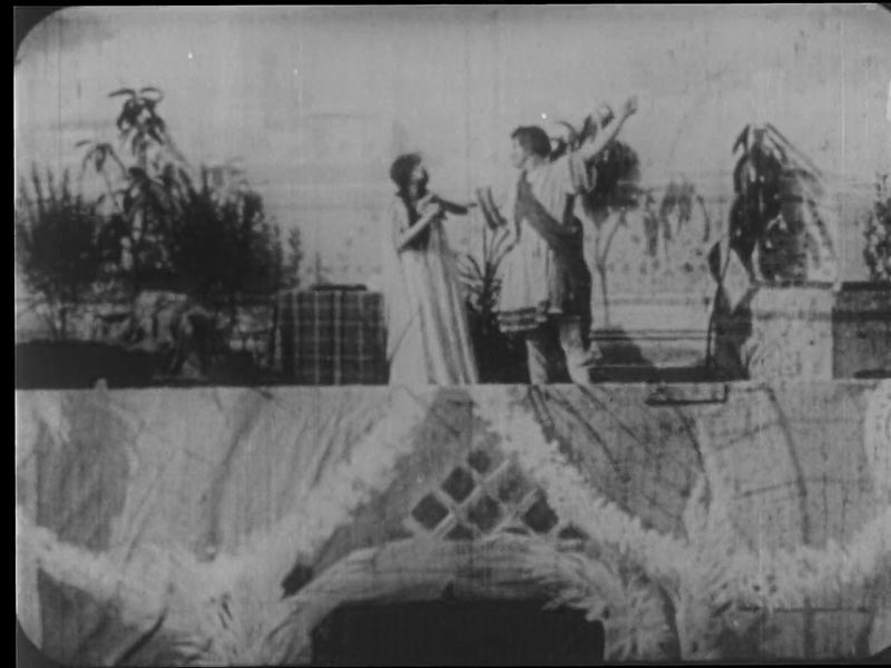 I imagine that the Kalem production was much more exciting when hand-colored (only an extra $150!) but when compared to other productions of the time, it’s pretty chintzy. Segundo de Chomón, for example, was creating elaborate narratives that took advantage of downstage space to enhance their dynamic quality. (In other words, people walked toward to camera once in a while. How about that, Sidney? How about that?)