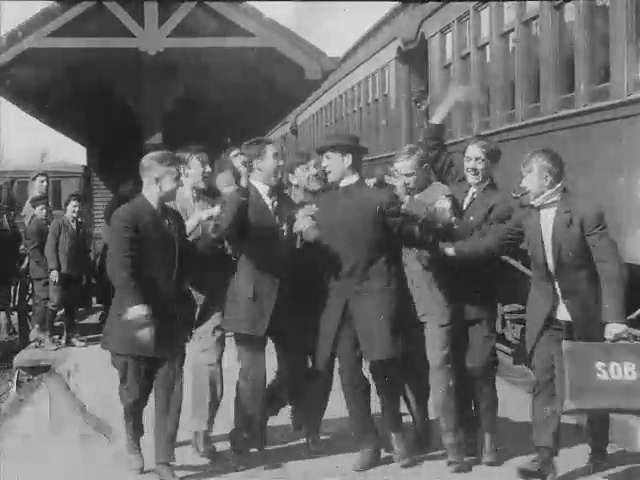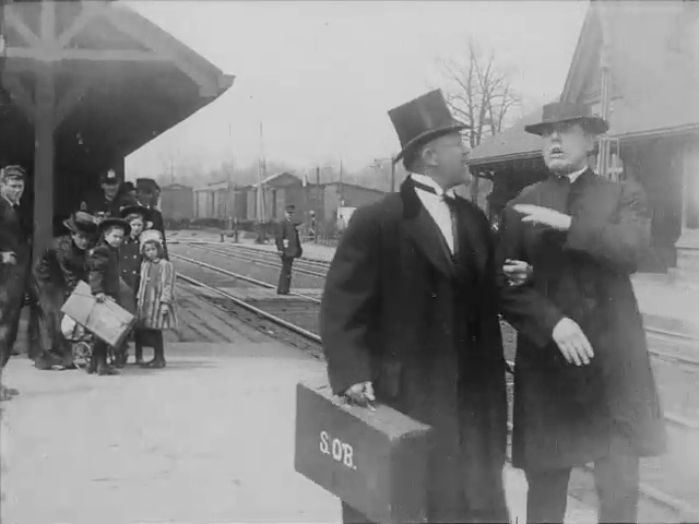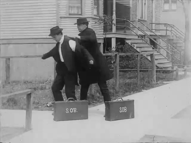 When a pair of railway travelers with the same initials cross paths, chaos ensues. You see, one gentleman is a minister, the other is a prizefighter and they both have the initials S.O.B. monogramed on their luggage.