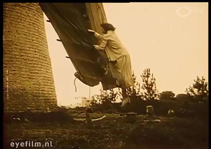 The Dutch film industry was not as big as those of its neighbors but it had its own studios, stars and style. The Hollandia film company was founded in 1913 by Marits H. Binger and The Encyclopedia of Early Cinema describes typical Dutch settings and landmarks as the house style for Hollandia, at least in the beginning. I mean, if the studio logo is a little girl in traditional clothing throwing flower petals, I guess we can call that accurate advertising.