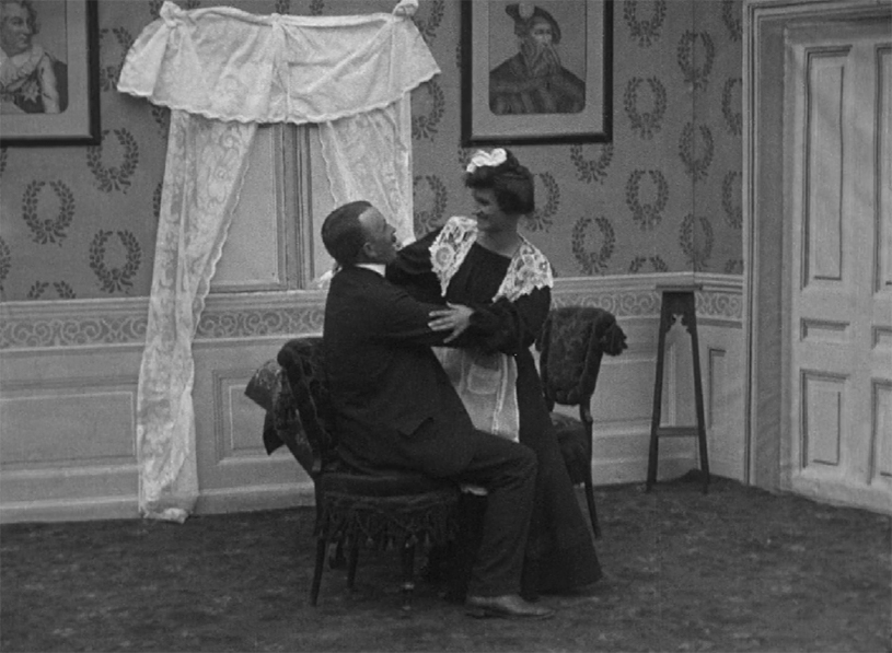 The Anarchist’s Mother-in-Law was made during his first year in the movies and Larsen himself starred as the anarchist. His calm apartment life and domestic bliss are spoiled when he attempts some hanky-panky with the maid (his anarchist beliefs do not extend so far as to do his own dishes) and his wife catches him in the act. And, more importantly, so does the mother-in-law.