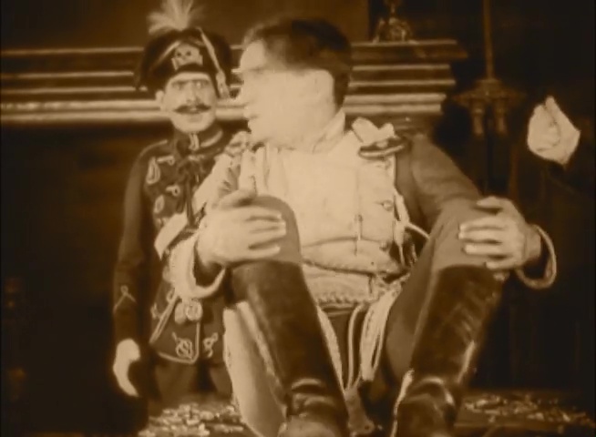 There are also smaller character bits that are fun. On the boat ride across the Atlantic, Alexis discovers that his food has been poisoned but the Foreign Minister has prepared for such a turn of events. He has kept a box of Uneeda biscuits and malt tablets. Truly, a meal fit for a king. Fairbanks gives us a pained expression before tucking into his feast.