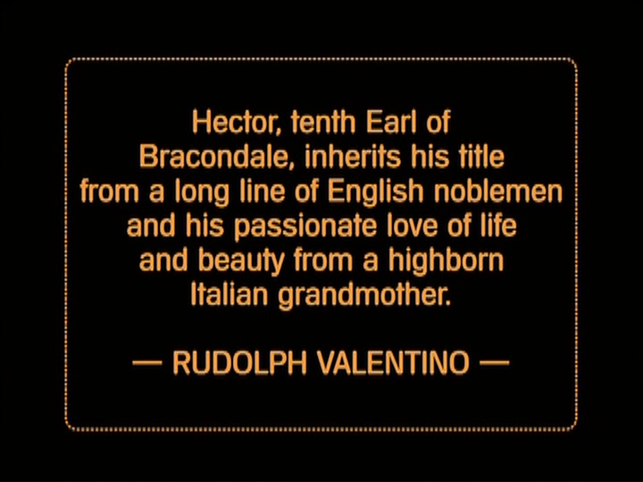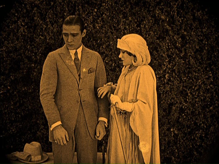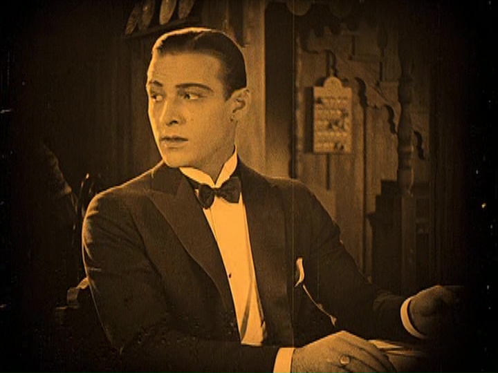 Valentino’s early heroic roles were often played under two tons of pale pancake makeup—he looked positively sickly in The Delicious Little Devil— but stardom brought permission to be dark and handsome, so long as the matter was carefully explained in writing and his character had at least one WASP-y parent. “I’m sure you’re all wondering why this Italian man is here. Well, let me tell you…”