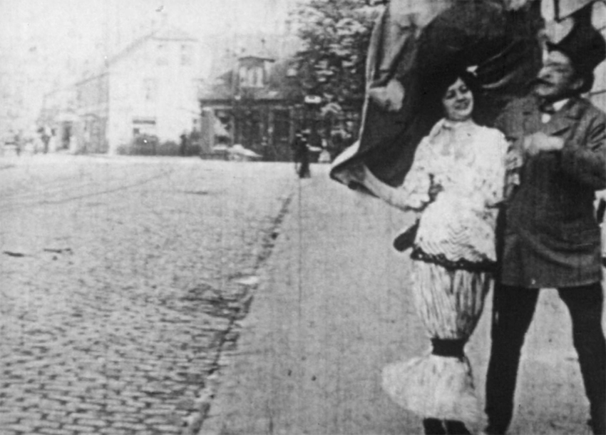 The film opens with Madam choosing her new hat. At the turn of the century, gigantic hats covered in all manner of flowers, feathers and veils were the rage and Madam means to outdo everyone with one at least four feet in diameter. Her husband (let’s call him “Herr”) supports his wife’s fashionable endeavors and even takes part the window so they can winch up the wagon wheel-sized hatbox. So what if her hat knocks down a vase or two in the living room?