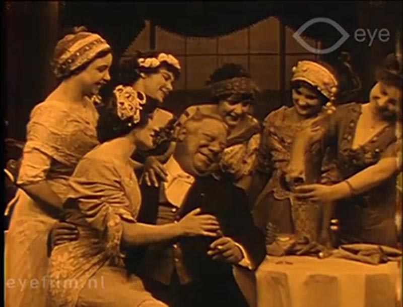 In this case, Finch plays the neglected wife of a businessman and Bunny is the wayward husband who spends late, late nights in restaurants with his younger colleagues (one a very young Wallace Reid). A review of the time described Bunny’s character as a man who likes “the large cold bottle and the small hot bird.” This is interesting because the available cut, a Dutch language release, makes it clear that Bunny is guilty of nothing more than forgetting to call his wife while catching a late dinner with his male clerks.