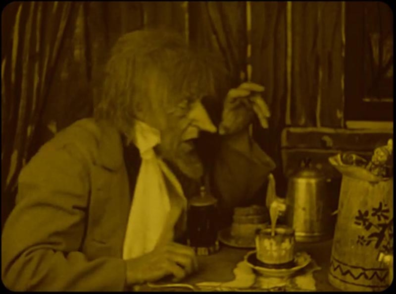 The set piece of the film is the meal preparation scene and Blackton pulled out all the stops. There’s a bit of stop motion animation, particularly when the doll takes part in the preparation, but the scene also seems to incorporate string puppetry and something as simple as a peg on the back of the coffee pot so that it can be poured by an invisible hand. These multiple techniques not only add richness to the scenes, they also keep modern viewers guessing because just when they’ve figured out one special effect, another pops onto the screen for them to discover.