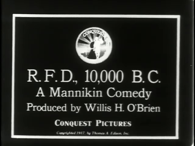 O’Brien was, of course, the genius behind the dinosaurs in The Lost World and I had also heard of The Ghost of Slumber Mountain, his earlier dino work, but the Library of Congress turned me onto his prehistoric work for the Edison film company and that’s where R.F.D. 10,000 B.C. comes into the picture.