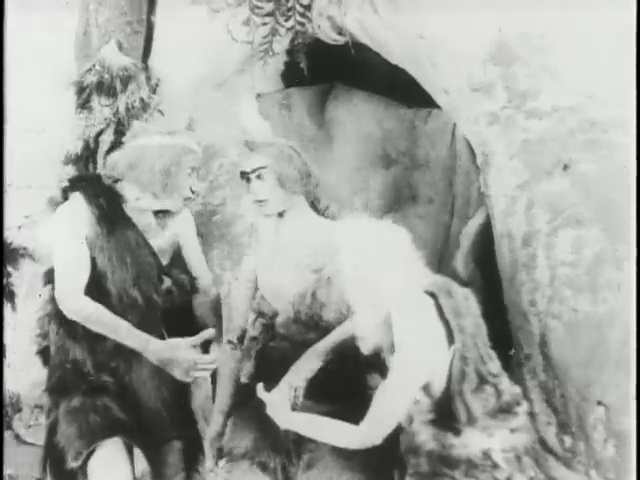 As far as we know, the British Hepworth company started the dinosaur ball rolling with its 1905 adaptation of the Prehistoric Peeps comic strip but there was a major caveman boom in the early 1910s, with just about every major studio releasing some kind of prehistory picture. The Cave Men War (1912, Kalem), Race Memories (1913, Pathe), The Revelation (1913, Kay-Bee), In the Long Ago (1913, Selig), The Primitive Man (1913, Biograph) and many, many more.
