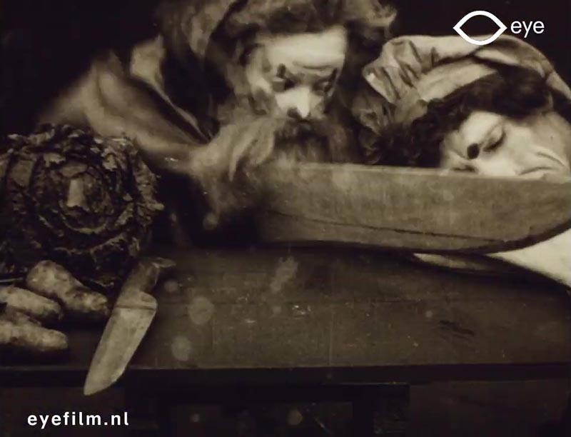 In the case of Scullion’s Dream, the eye is not particularly drawn the to basket containing the dwarf and it is easy to miss his all-important gestures upon first viewing. I firmly believe that stencil color on the character would immediately make the scene flow much better and be easier to understand. Naturally, I understand that we are fortunate to have any copy of any early film but pictures like this and Méliès’ Blue Beard really make me wistful for what was lost.
