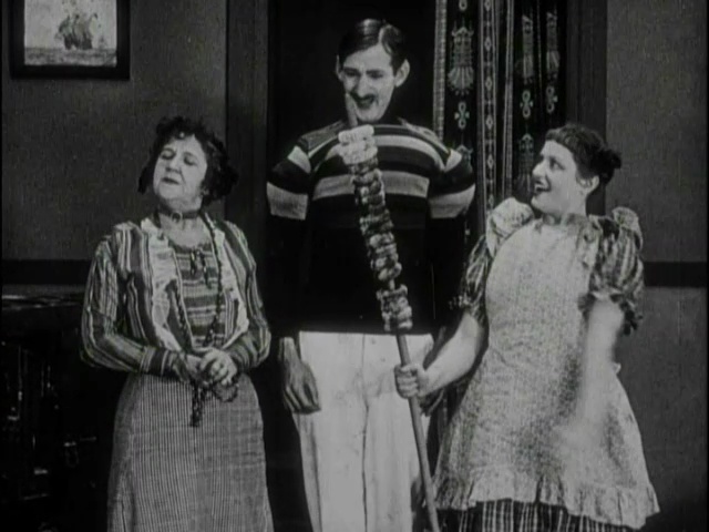When Summerville makes his appearance, he is decked out in fake muscles and a comically striped sweater. Now, anyone watching the film can see that the muscles are as phony but both mother and daughter fawn over the muscles. So, when the father marches over and pops the balloons used to bulk out Summerville, the gag lands beautifully because we had been lulled into at least partially accepting those biceps and pecs as an in-world reality along the lines of crepe mustaches and oversized shoes. Nobody sincerely believed Chester Conklin and Mack Swain were sporting their own facial hair, after all.