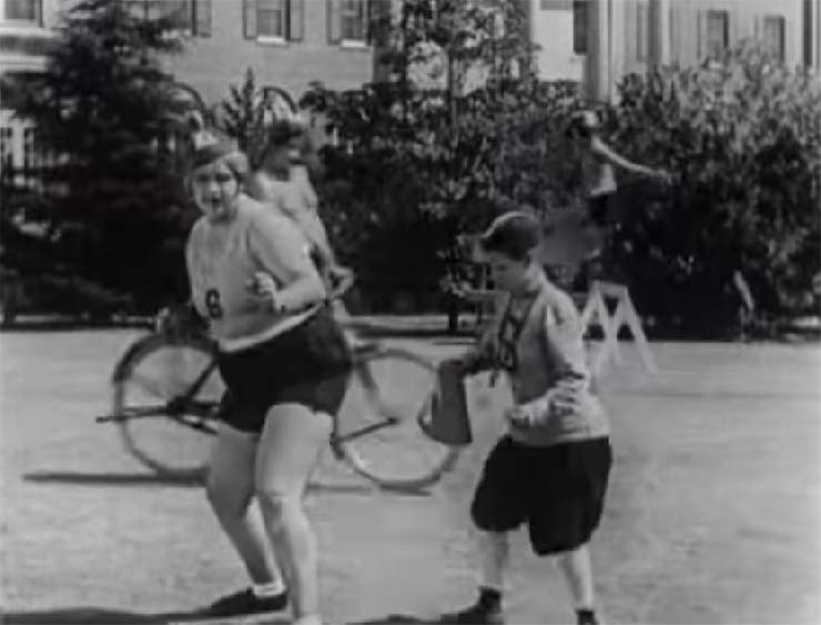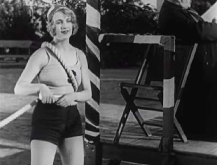 Much of the film is taken up with Norma attempting to escape the dorms in order to neck with her sweetheart in his flivver, as they say, while Minnie tries her best to stop her. The picture injects some sass when coach forces her runner to disrobe and share a bed so she can keep tabs on her but Norma evades her by filling a rubber glove with water and slipping it into the sleeping Minnie’s hand. Later, Norma loses a race when she is distracted by her powder puff. Minnie confiscates the puff, which is then accidentally fried as a pancake. It’s rather that kind of film, I’m afraid.