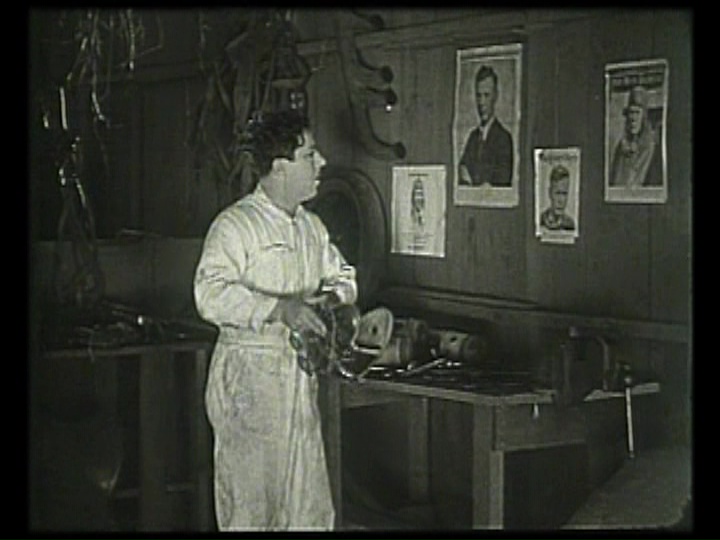 In the case of this picture, the Boy (Monty Banks) is so enamored of Lindbergh’s flight that he has built a shrine to him with photos clipped from magazines and has even cobbled together his own plane, the Spirit of Plum Center. His maiden flight ends when he crashes into an Army recruitment center, which is also festooned with Lindbergh paraphernalia as the pride of the Army Air Corps.