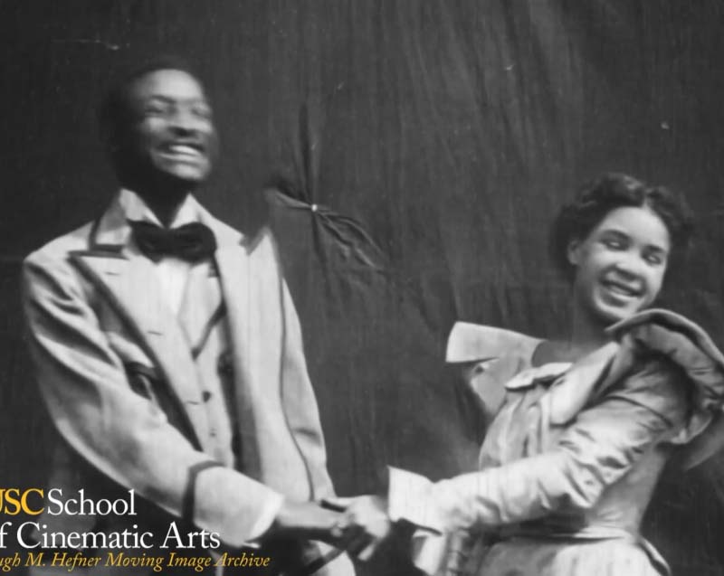 I am sure most of us are curious about how Something Good came to be made. Film historian Allyson Nadia Field, who identified Something Good after Everett discovered it, points out that the film’s lovers were professional dancers. Dance films were big business and she speculates that they had been hired to perform a cakewalk before the Selig cameras and an impromptu kiss film was shot at the same time. Their clothing would have been quite suitable for a cakewalk performance, which demanded grand attire.