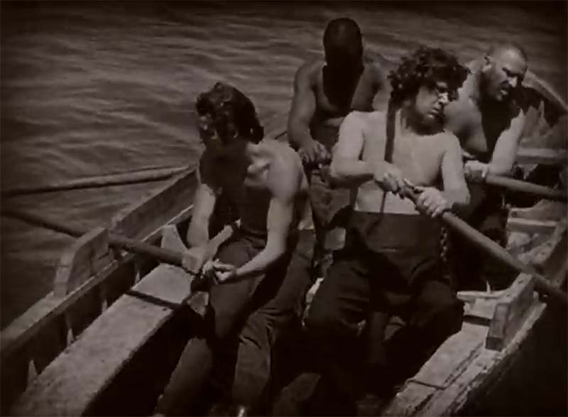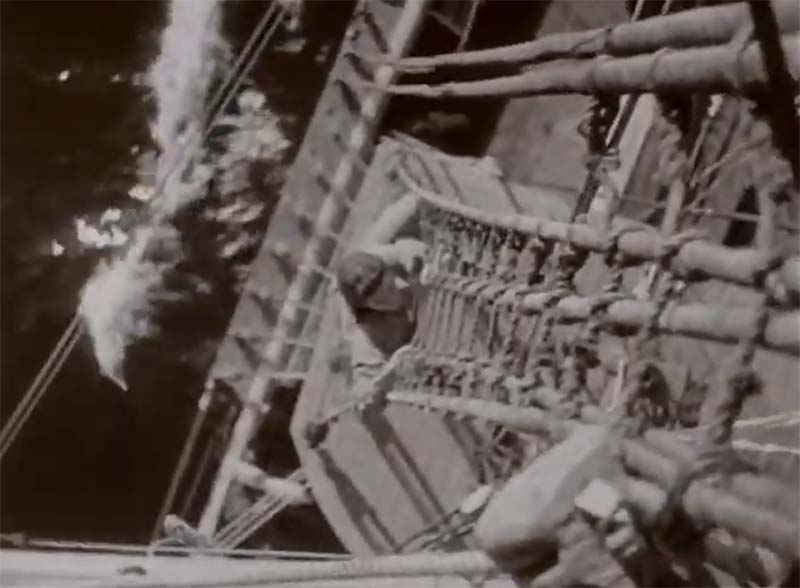 Enough of that mushy stuff! More money shots of the Constitution, please! I do enjoy loving pans of real sailing ships or galleys in the movies. Any studio worth its salt had to have at least one functional replica, refitted vessel or even original to its name. The Sea Hawk for First National, DeMille’s The Yankee Clipper, Charles Ray’s The Courtship of Miles Standish, MGM’s Ben-Hur, Edison’s Kidnapped, and, of course, Old Ironsides.