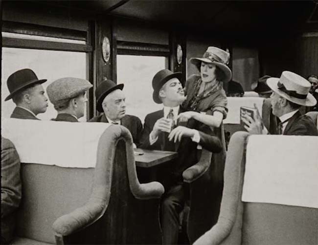 Ann causes just as much trouble on the train, exposing and thrashing a slick cardsharp and chasing the porter with a pistol. (The porter scenes display the racism endemic during the period with dialect title cards and stereotypes galore.)
