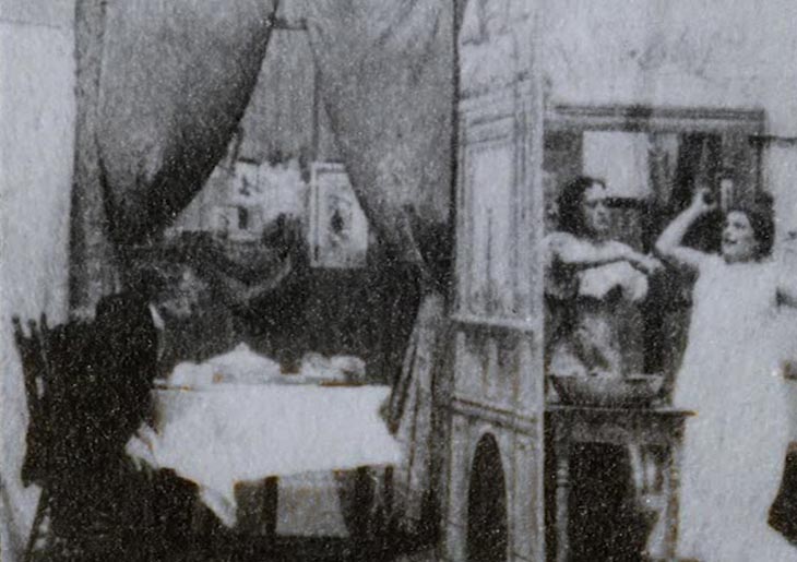 Despite the film being described as censorable and erotic by some modern writers, it showed less skin than the postcards that were legally allowed to pass through the postal systems of the United States and Great Britain and was likely seen as mildly naughty, if that. As shown by The Kiss and Fatima’s Coochee-Coochee Dance, modern people tend to view Gilded Age moviegoers as stereotypical Victorians fainting at the sight of piano legs, which simply was not the case. And it’s ironic, given how much of How Bridget Served the Salad Undressed relied on vintage stereotypes of a different sort.