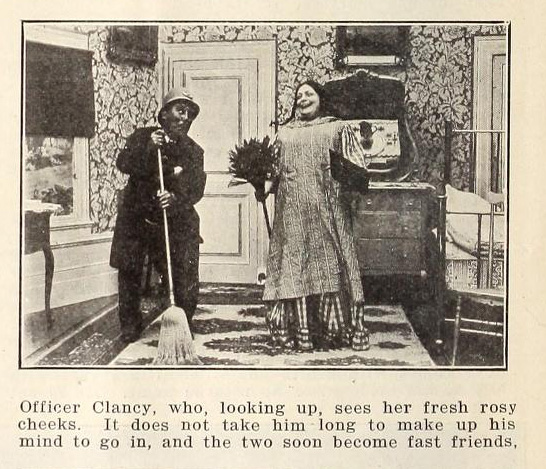 In Maggie Hoolihan Gets a Job, Clancy is a walking stereotype who marries the title character and has “only” ten children with her. In Mike the Housemaid, Officer Clancy is a bit of a rascal but manages to catch some burglars when he was actually trying to avoid duty. In the film simply titled Clancy, he is a true-blue policeman who just wants to get home for Christmas with his loved ones and dies gallantly in the line of duty. Bridget never received the same level of regeneration but Irish stereotypes were either fading or reframed as “affectionate.” By the late 1910s, Irish-Americans enjoyed enough institutional power to successfully protest and censor xenophobic humor in the Paramount picture Castles for Two.