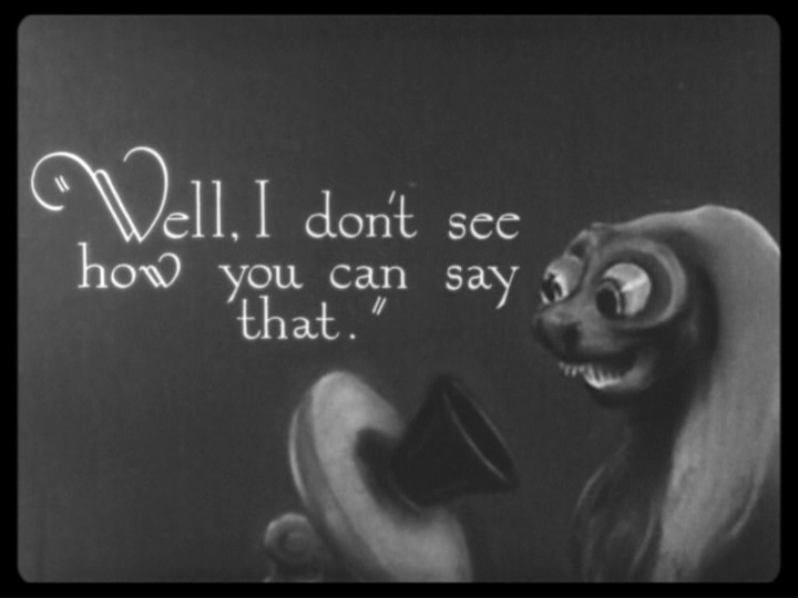 Another feature of the film that is practically a character in its own right is the title card artwork. Whoever drew those caricatures hit the nail on the head and enhanced every gag they accompanied. In fact, more than a few of the laughs I enjoyed were the direct result of this droll artwork. The credited artists were F.J. van Halle, Carl W. Schneider and Leo H. Braun.