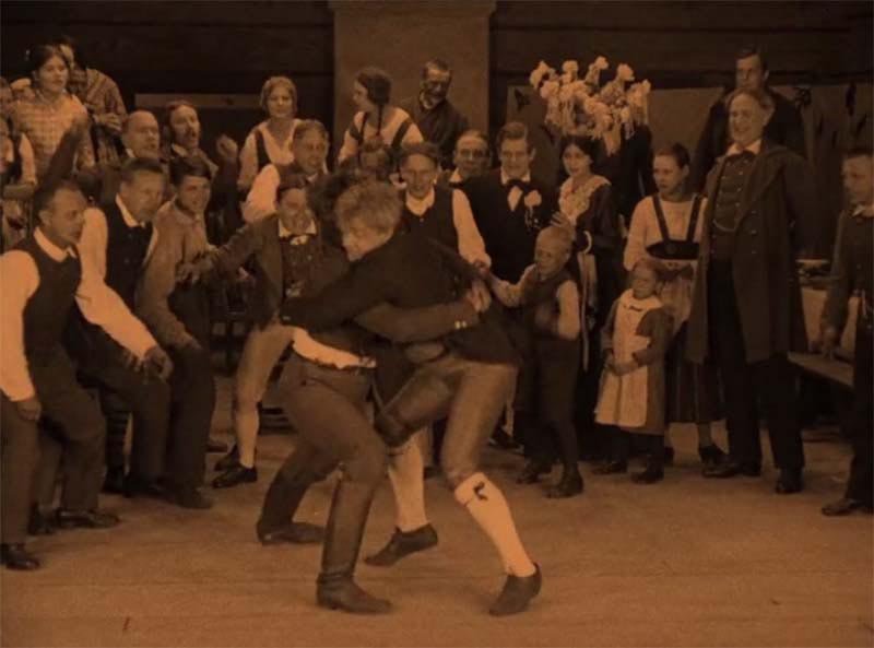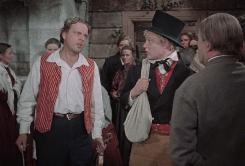 When Esko and Mikko arrive at Kreeta’s house, they see a wedding banquet underway. The bride is Kreeta and the groom is the local clogmaker, which Esko considers a major step down from a cobbler like himself. Kreeta’s father explains that he was joking with a very drunk Topias when the latter proposed the engagement. Esko picks a fight with Teemu the wedding fiddler (Sven Relander), which he loses, and confronts Kreeta and her family before smashing up the house and fleeing with an amused Mikko following.