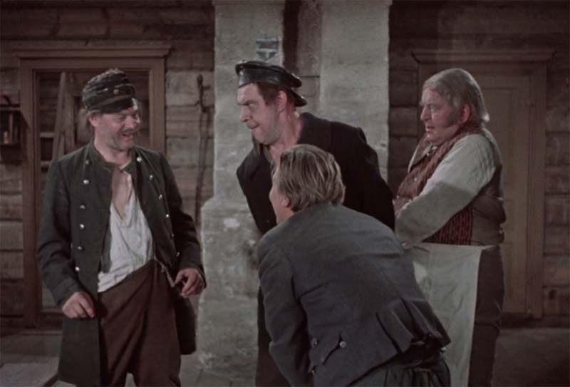 In the midst of all this, Jaana’s father Niko (Juho Puls) has returned and is anxious to get back to his daughter. Overhearing Iivari and Sekari discussing their predicament and how to make up for the money they have been drinking away, Niko decides to disguise himself as the wanted thief, use soot to add a mole to his face, and trick them into giving him a ride home.