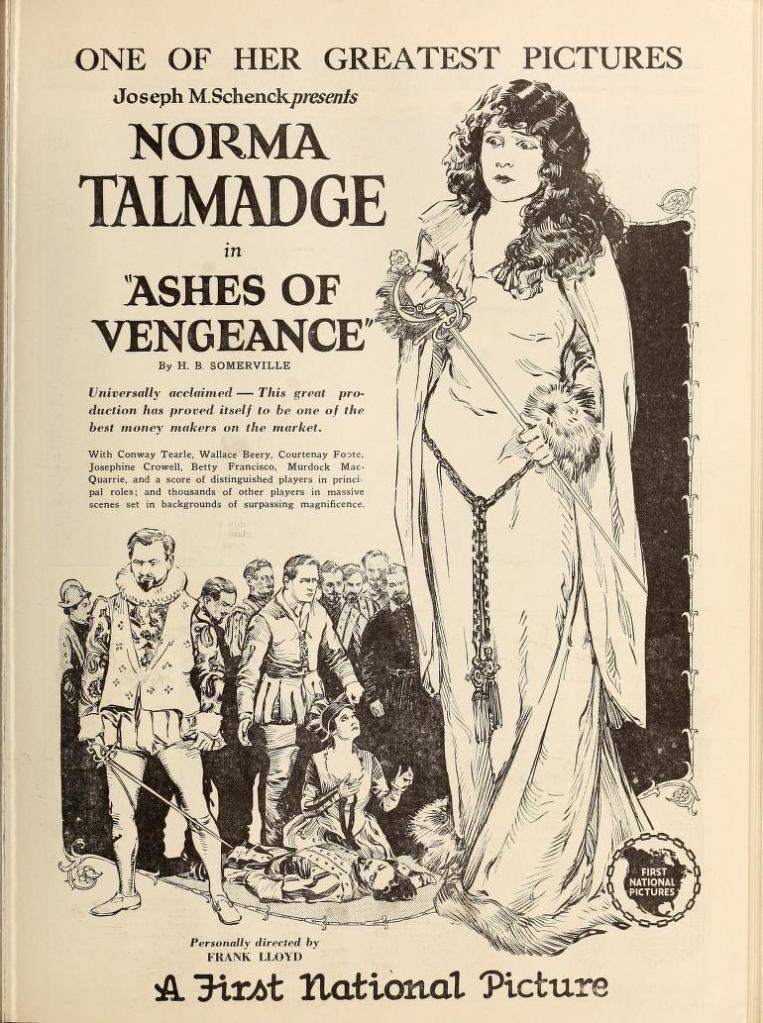 If there was one thing everyone in Hollywood agreed on in the early twenties, it was that big costume pictures were the thing, the larger and more lavish, the better. First National in particular was keen to show itself a leader of the genre and Ashes of Vengeance, based on an enjoyable 1914 novel by H.B. Somerville, was their opening salvo in a successful campaign of historical entertainment.