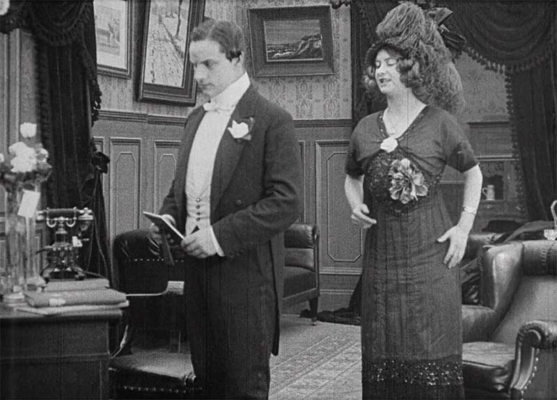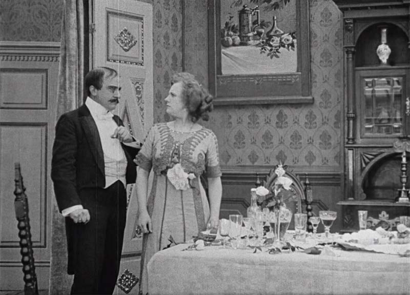 (The film’s scenario includes an attempt at footsie under the table but is prefaced with a note that the shot should probably be omitted and it was. However, it’s interesting to see what scenarist Otto Gulmann intended to get across.)