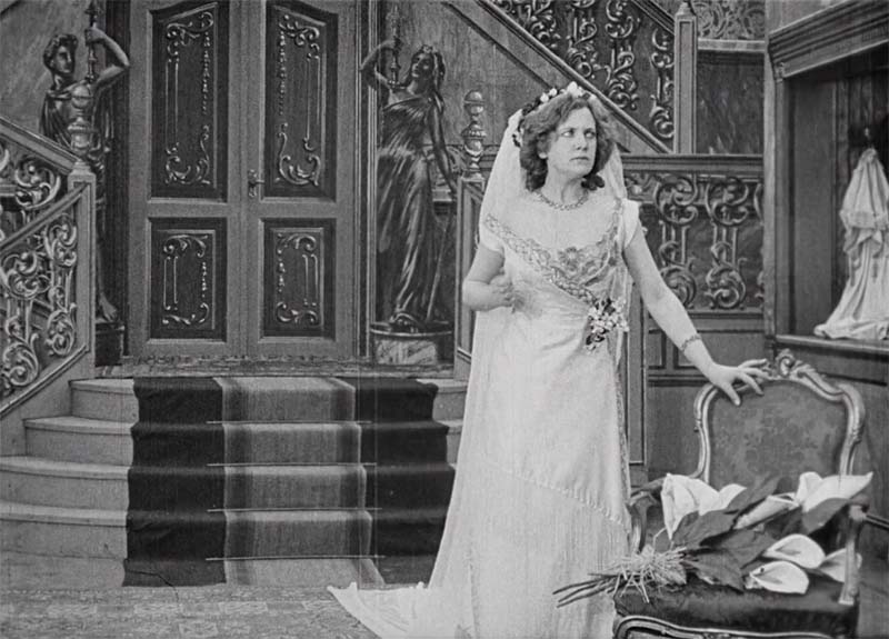 Despite the heavy use of sets, standard at the time, this is a very attractive film indeed. I am a sucker for the moody lighting of the 1910s and Bride of Death has several lovely scenes illuminated only by a fireplace or a single lamp, offering a cinematic vison that matches the dark tone of the story.