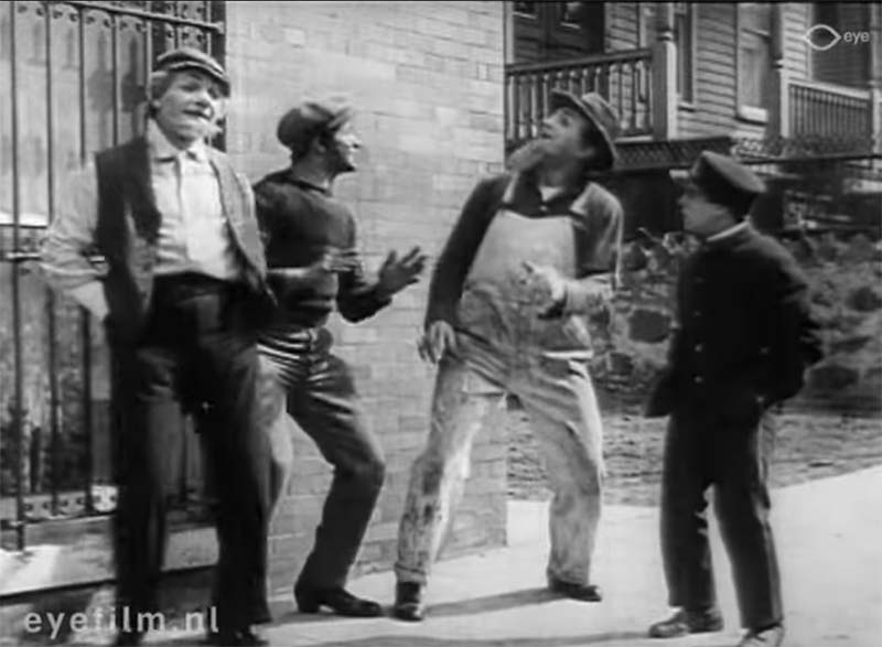 The musician can’t even wait for the movers to finish setting up his furniture, once the piano is in place, he sits at the keyboard, gloats over his sheet music for Irving Berlin’s Alexander’s Ragtime Band and begins to play. The movers can’t help but sway to the music, twirling rugs and chairs, until the musician becomes annoyed and shouts for them to leave.