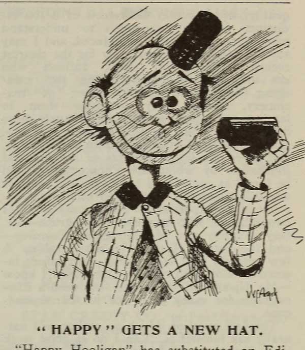 By the same token, the Zecca film was reworked as a vehicle for the comic strip character created by Frederick Burr Opper. Happy Hooligan was a, well, happy tramp who managed to maintain a cheery disposition despite his poverty. His signature was an empty soup can strapped to his head as a hat.