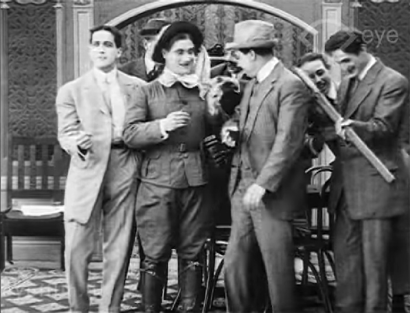 The character of Willie wears a rather long decorative band on his hat and a puffy bow tie, plus his gestures are quite dainty and affected. Was he coded as effeminate? Another thing to know about films of this period is that advertisements were not coy and loved nothing more than making the subtext text. Lubin’s own advertisement for the picture states: “Willie Tate, a somewhat ladylike member of the Oakland Club…”