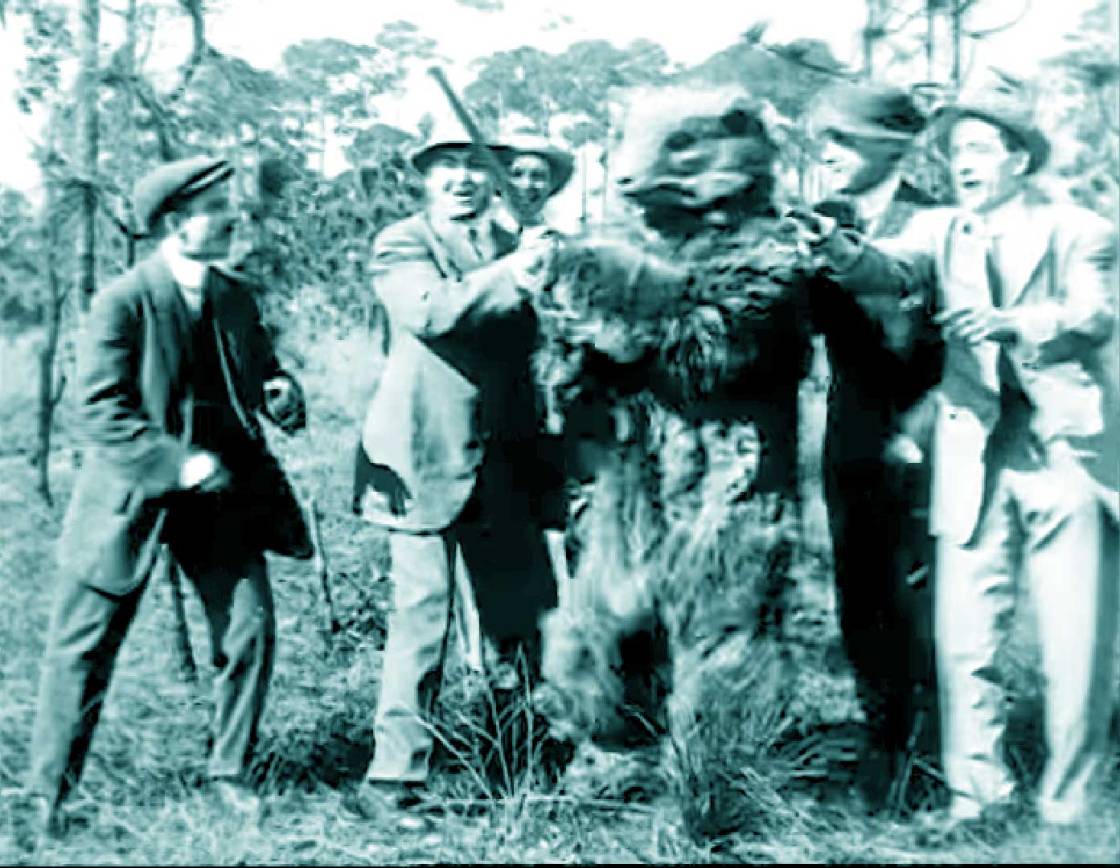 Lubin not only embraced slapstick in Willie the Hunter, and not for the first time, it also had some fun at the expense of trophy hunting. Big game hunting was seen as prestigious at the time and footage of former President Teddy Roosevelt hunting trip to Africa had been a major hit in 1910. (It’s worth noting that Roosevelt’s penchant for bloodsport was not universally popular and he was mocked for his seeming willingness to hunt anything that moved in films like The Teddy Bears.)