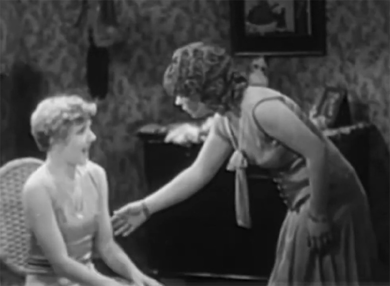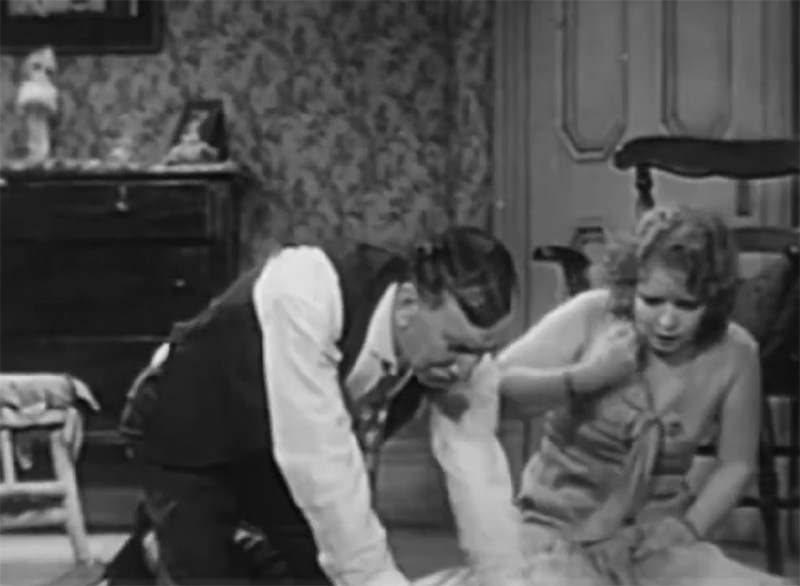 In the 1926 film, Mame attempts to steal Lem’s wallet, he snatches it back and a knock down drag out fight ensues. Bill hears the rumpus over the telephone and races to the rescue. He arrives to save Mame… only to find her calm, collected, in possession of the money, and Lem stuffed into the Murphy bed.