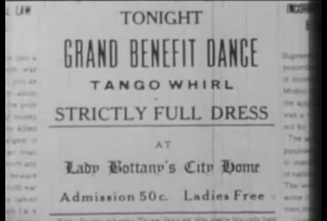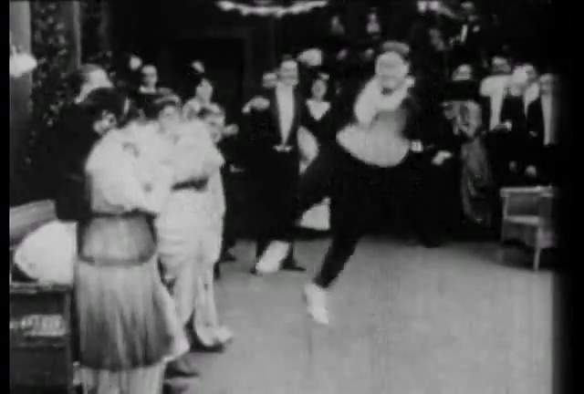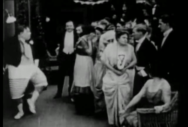 The story opens with Durfee and Arbuckle reading about a tango whirl ladies’ night. Gentlemen must pay fifty cents and arrive in evening dress. Arbuckle doesn’t have the suit or the money but Chase does. The pair tussle over who will be taking Durfee and Chase’s suit ends up getting mussed in the turmoil.