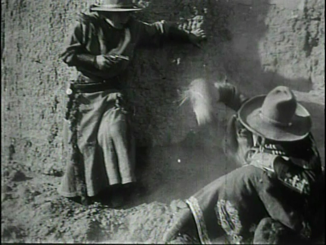 As the National Film Preservation Foundation’s notes point out, the French Éclair company chose to film in Arizona in order to capitalize on European interest in the Mexican Revolution. Other European-backed films (such as Across the Mexican Line) were shot on the topic, most presenting heroic Americans and villainous Mexican characters. The Girl Stage Driver is no exception, with extravagant costumes making the nationality of the bandits clear.