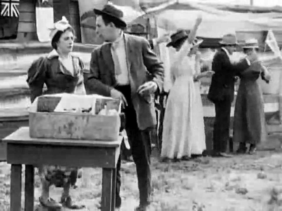 Chaplin is, of course, famous for centering his comedies on the working class and the impoverished but he wasn’t alone in this. Normand’s character faces the perils that would have been familiar to working women: bullied, harassed, generally disrespected. This state of affairs was used for both drama (the majority of Lois Weber’s filmography, in fact) and comedy, including the 1909 comedy Mr. Flip, in which the working women get their revenge against a serial harasser. And in the end, the two leads from the bottom of the social ladder realize that they are both in the same boat and wander away from the leering and looting race spectators and the useless cops.