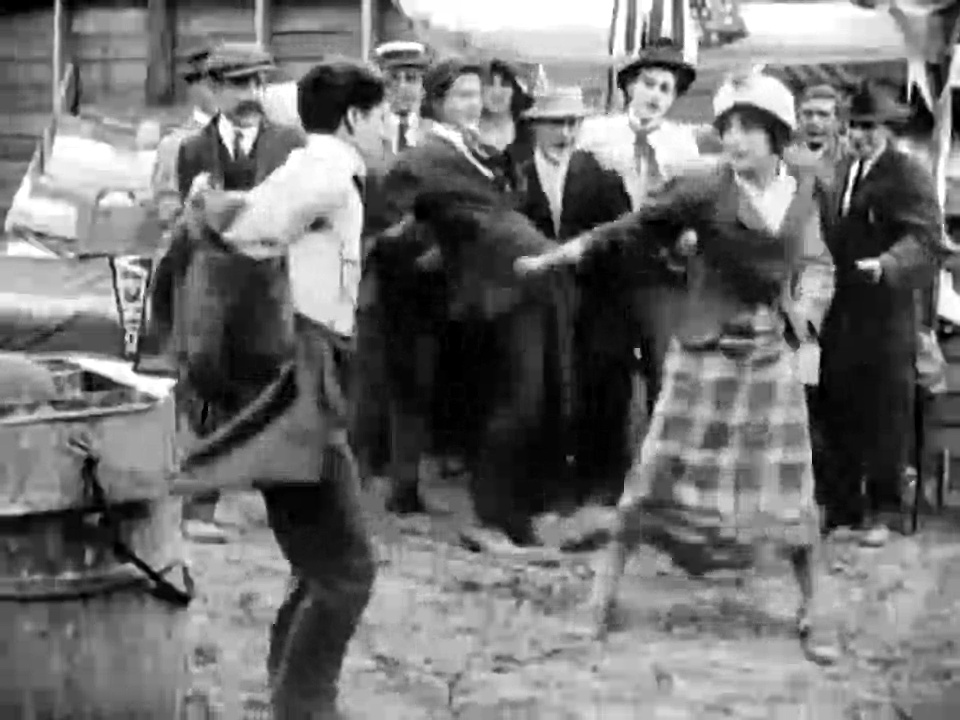 Charlie tries his hand at hot dog selling, hoping to make a quick buck after he eats his fill, but the racetrack customers are no nicer to him than they were to Mabel and a brawl ensues. Determined to recover her stolen property, Mabel enters the fray and soon she and Charlie are battling one-on-one. They kick and punch and finally both burst into tears and wander off arm-in-arm.