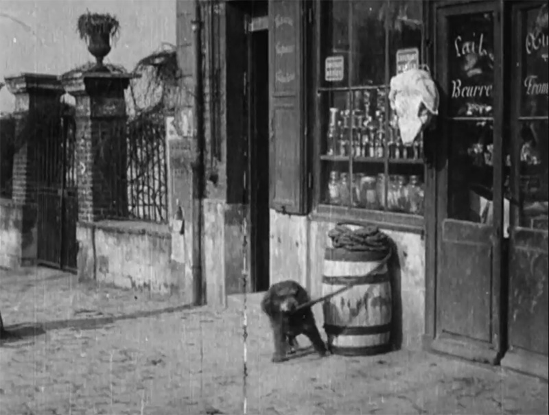 When a naughty poodle steals a string of sausages from a butcher shop, the staff gives chase and a chaotic pursuit across the village ensues. Alice Guy’s take on the popular chase picture genre.