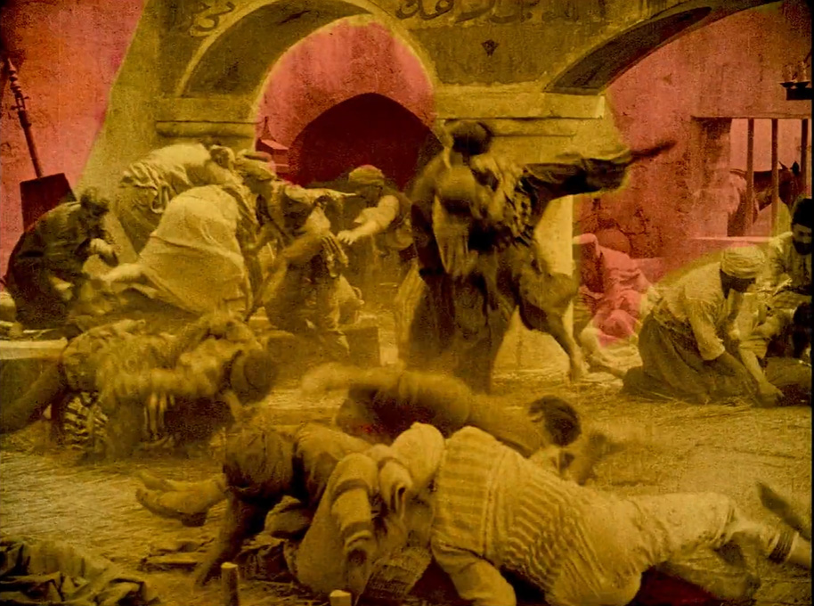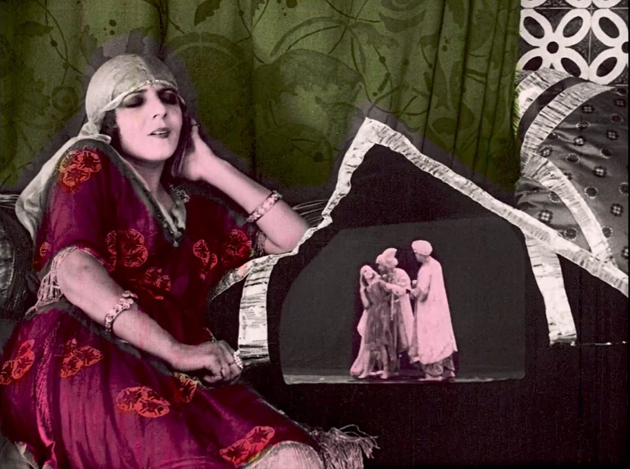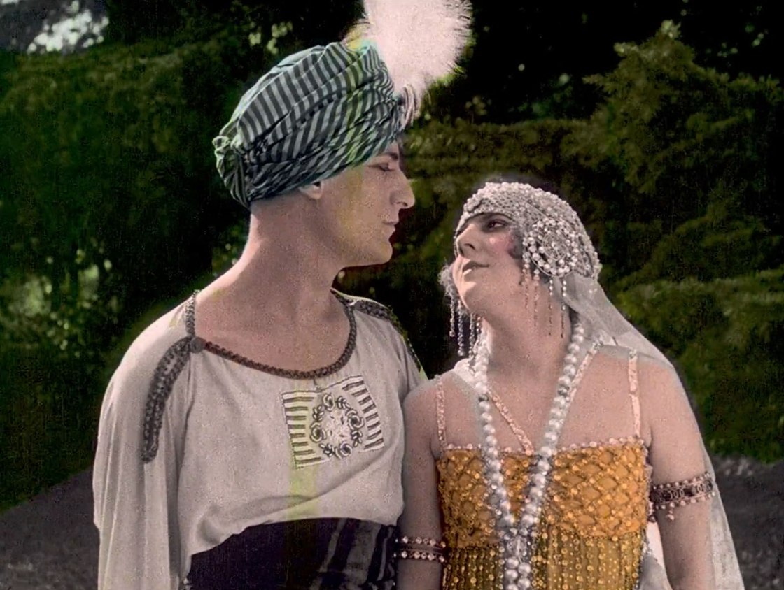 The Sultana of Love was a slightly different situation. While it had been initially planned as a stencil-colored film, it had been released in 1919 without it, presumably to avoid an expensive product moldering on the shelf while the color application was completed. Another assumption I make is that the film would have been tinted upon its original release, something common for films, particularly lavish epics, at the time.