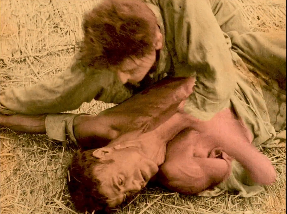 Some scenes are breathtaking in their beauty, especially shots involving sunsets, the sea, trees and mountains. Nature is friendly to stencil color. Less successful are scenes involving large numbers of extras. The color is inconsistent between long shots and closeups, details appear and disappear and recolor. Action sequences also seem to be a problem, with the color sometimes being lost as the characters slug it out and dive to the floor.