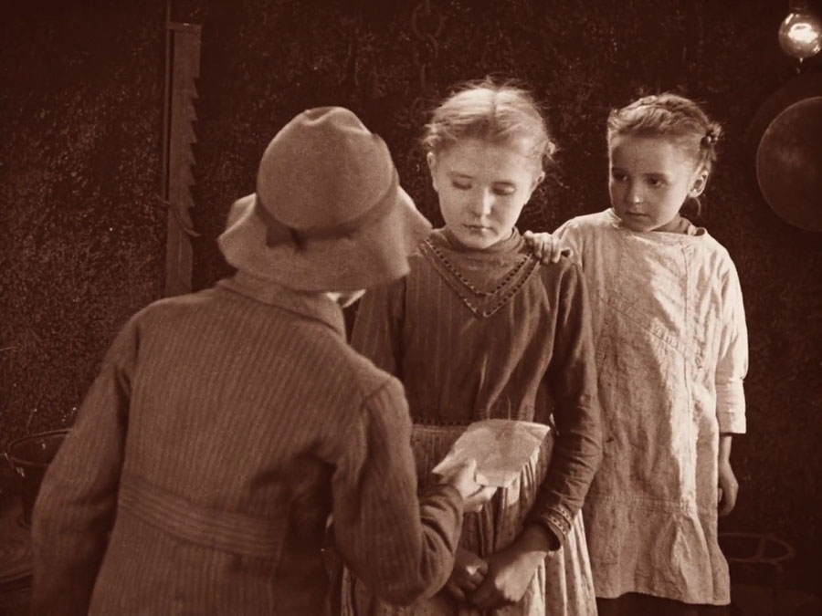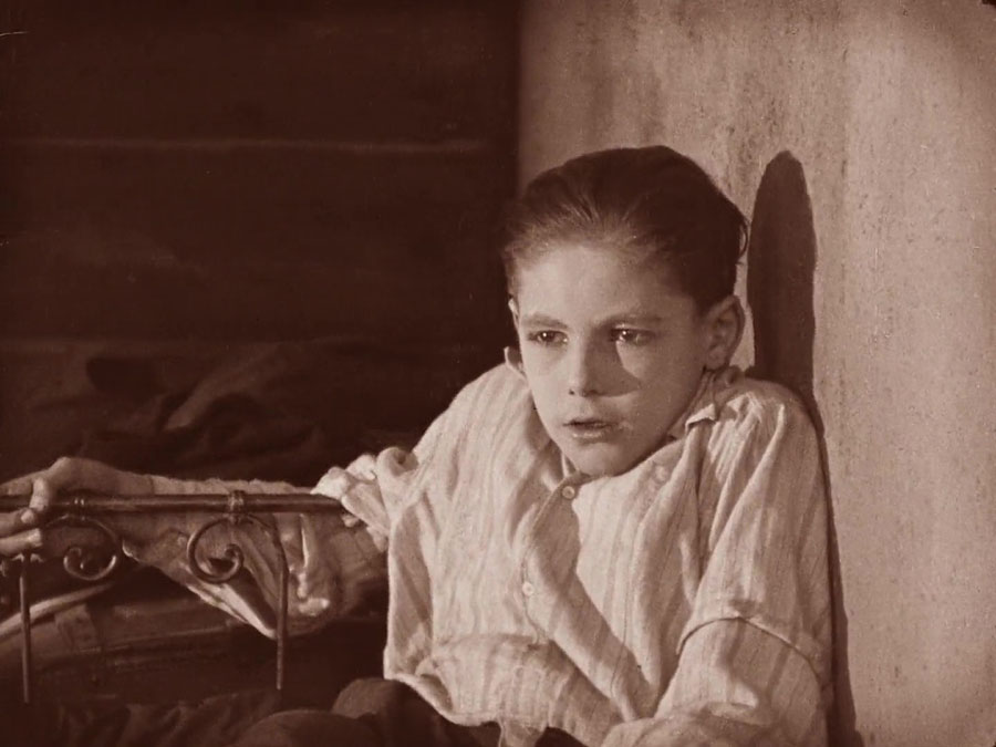 Shot on location in Switzerland, the picture opens with a funeral: Pierre Amsler, the mayor (Victor Vina) of a small mountain village has lost his wife (Suzy Vernon). His young son, Jean (Jean Forest), is barely holding on. A sensitive boy who was close to his mother, Jean finds little support from Pierre, who is lost in his own grief. Pierrete (Pierrette Houyez), the youngest child, does not realize what has happened, so she stays home and happily plays with her kitten and blows soap bubbles as her father and brother go to bury her mother. The funeral scene is shot from a child’s eye view, showcasing a world of kneecaps and would-be helpful adults looking down on the traumatized boy.