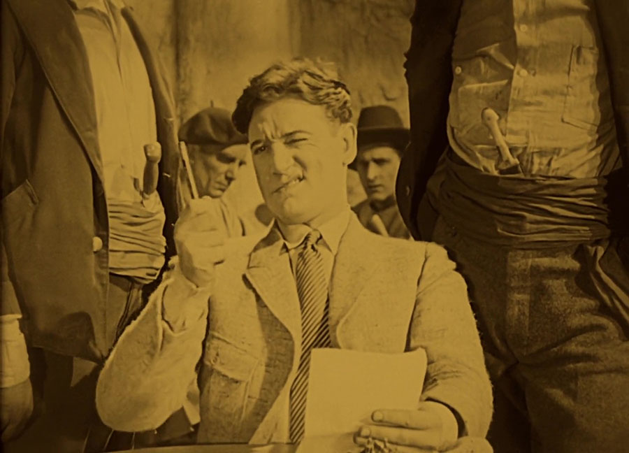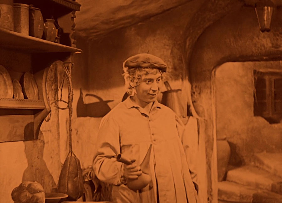 This creates some tension as the viewer waits to see more Harpo in a film that was decidedly not about Harpo. Fortunately, it actually pays off this time because Harpo plays an important part in the finale. He wants to give the captured Dix a drink but the meanest guard bullies him away. Later, Dix escapes (offscreen, boo!) and Harpo finds the guard tied up. Rather than untying him and potentially allowing Dix to be recaptured, Harpo takes the opportunity to punch his tormenter. (After “speaking” a line of dialogue via intertitle.)