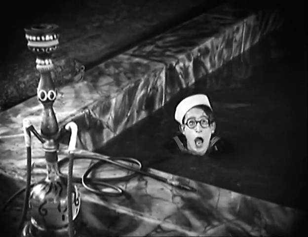 By the way, The Sheik had been a major 1921 hit and might be the first guess for inspiration but both the town scene and palace sequence in the film reminds me very much of Kismet (1920), a surprisingly good adaptation of the stage play (not yet a musical). The set design is similar in appearance, though I will admit that the Orientalist look was popular across Hollywood generally, but Kismet especially featured deep indoor bathing pools as both design elements and murder weapons, so I think it is probable that Lloyd or his writers had at least seen the picture.