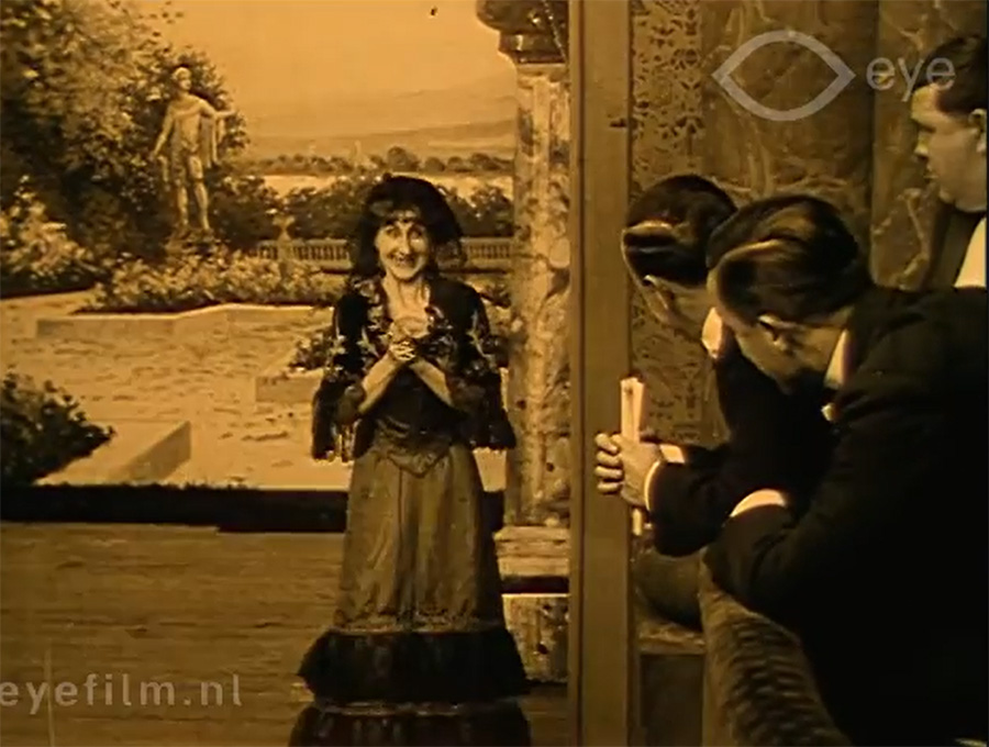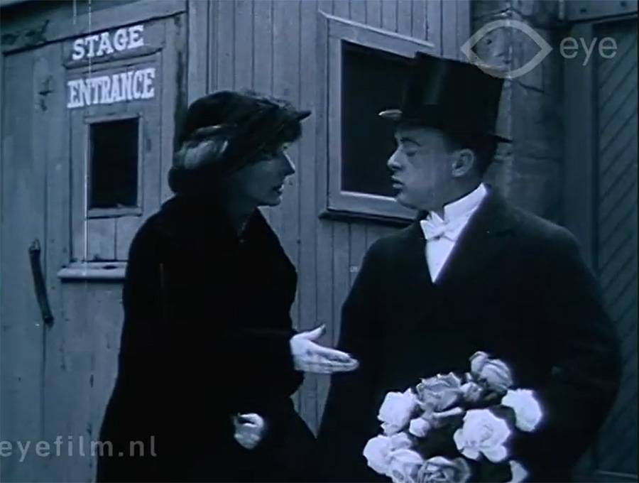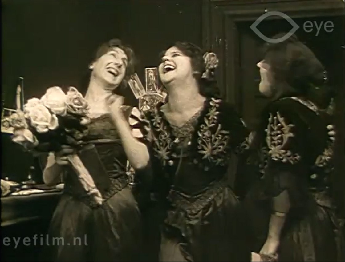 Cutey and the Chorus Girls begins, unsurprisingly, with Cutey enjoying a stage performance from the balcony with his friends (Hughie Mack and Harry Lambart). Cutey is looking for love and casts his net wide, eyeing multiple women at once and settling on two, Dolly (Lillian Walker) and Kitty (Leah Baird), for his attentions. Both openly snub him from the stage and, in the bustle of the performance, it is Flora (Flora Finch) who notices his signals and thinks he fancies her.